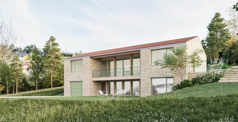 Ce projet propose ainsi une synthèse entre tradition et modernité, valorisant à la fois le patrimoine architectural régional et les exigences actuelles de confort, de lumière et de performance.